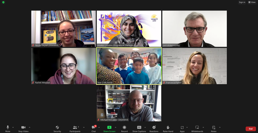 Above: Patrick Kenworthy with other GRAHAM volunteers at a Zoom Meet and Greet event with their Chapter One pupils
