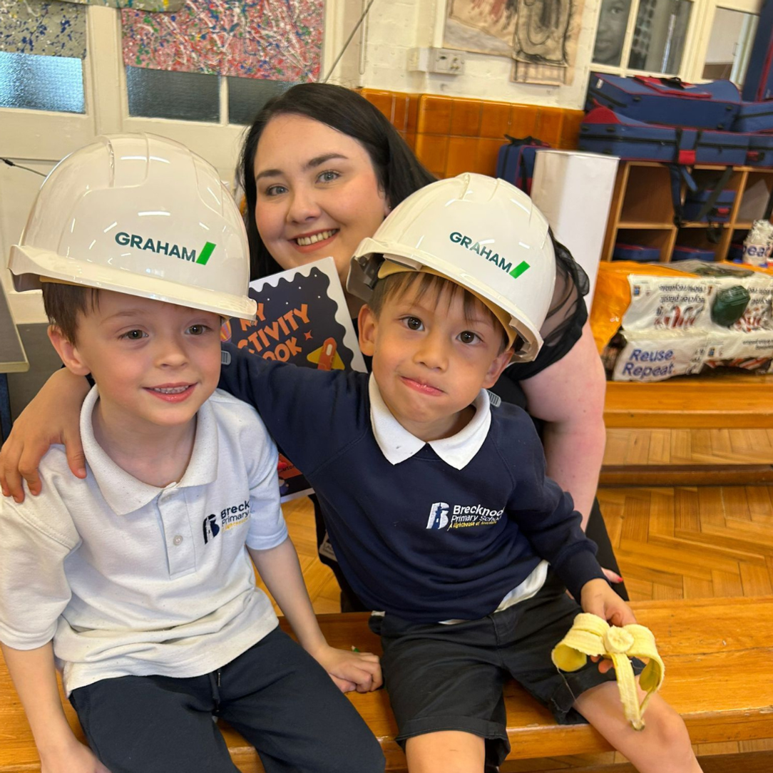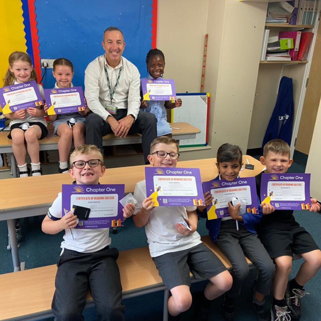 Above: Chapter One pupils with Stephen Hughes, Social Impact Manager at GRAHAM at an end-of-year reading celebration